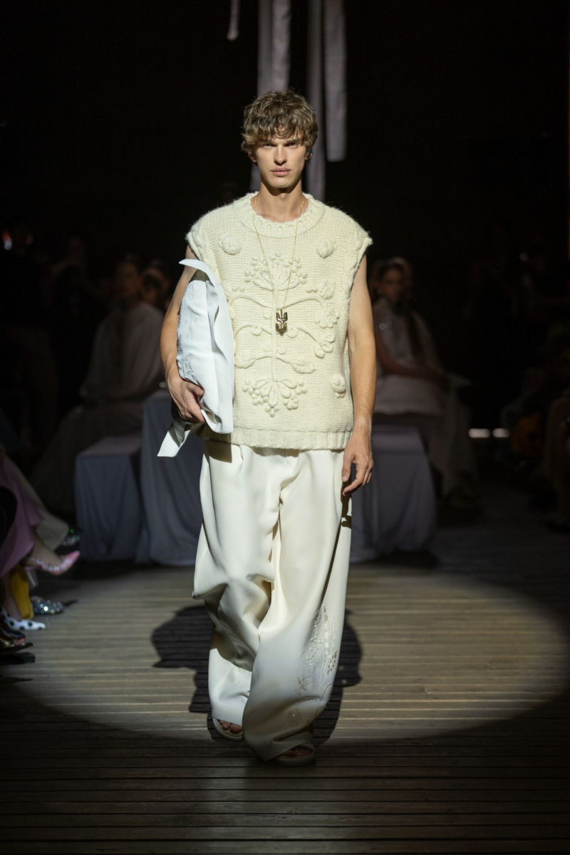 During London Fashion Week in September 2024, soldiers signed flags draped over the shoulders of Ukrainian designers Ksenia Schnaider, Nadya Dzyak, and Olena Reva at the finale of their show. Lilia Litkovska held up a handwritten sign that read “HELP MARIUPOL” during her show. Fashion and culture hold more power in times of war than many might think. These are messages that spread across social media and truly make an impact, in my opinion.