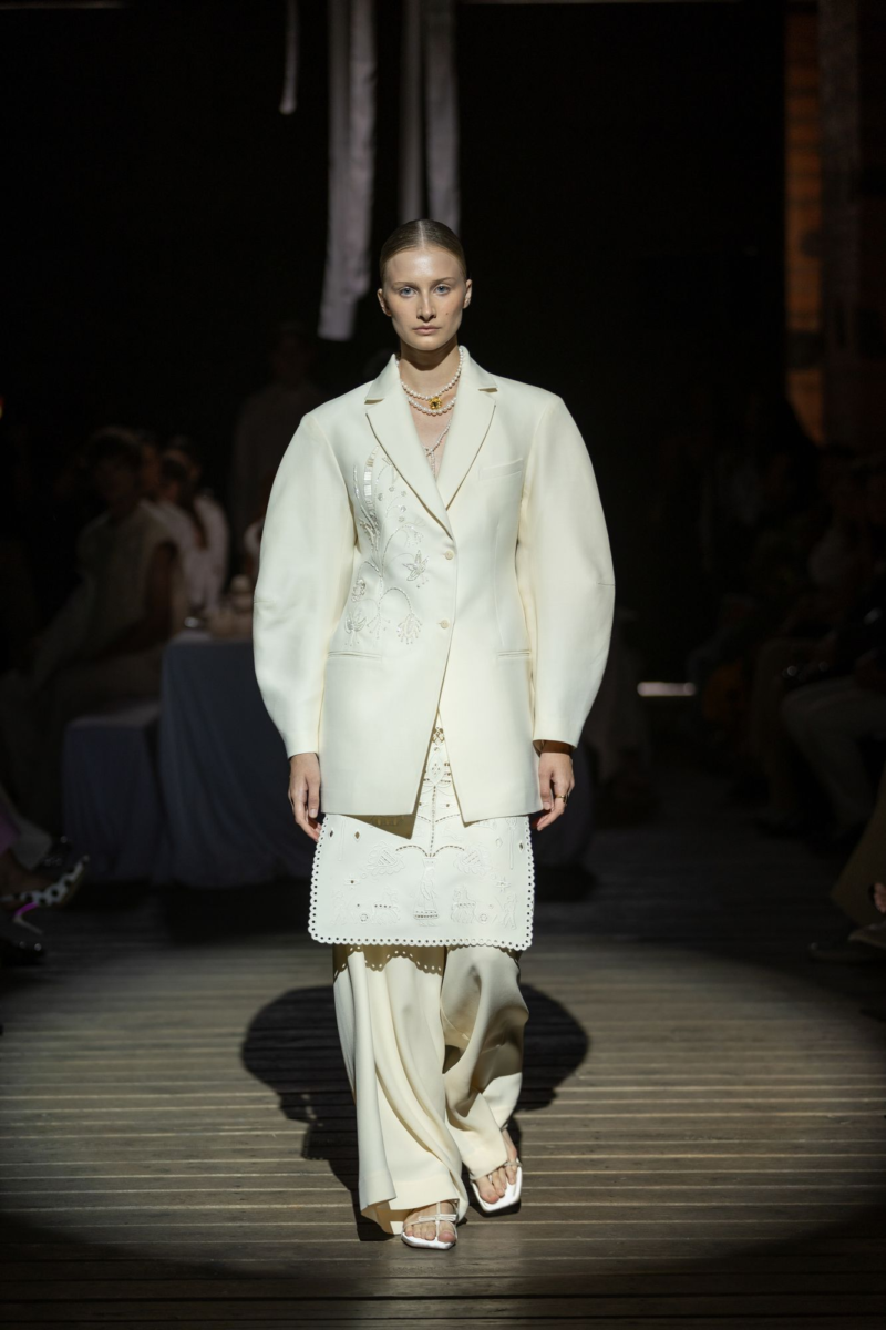 Ukrainian designers are expressing the current situation in their collections in powerful and symbolic ways. Lilia Litkovska, who founded her eponymous label Litkovska (@litkovska_official) in 2009, drew inspiration from "Vesniankas," traditional Ukrainian spring songs, in her Spring&Summer 23 collection. She incorporated the poem "The Prayer of a Ukrainian Patriot" into her designs, a piece that became an anthem for Azov, the defenders of Mariupol. The poem is seen as a reminder and symbol of the pain her country is enduring, especially since the start of the war instigated by Russia, but also as a testament to hope.