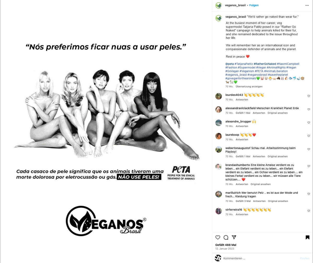 PETA launched its „I'd rather go naked than wear fur!“ campaign for the first time in 1990 - with great success. Even supermodels such as Naomi Campbell and Cindy Crawford went naked for the campaign, but later wore fur on the catwalk again, causing outrage among animal rights activists.