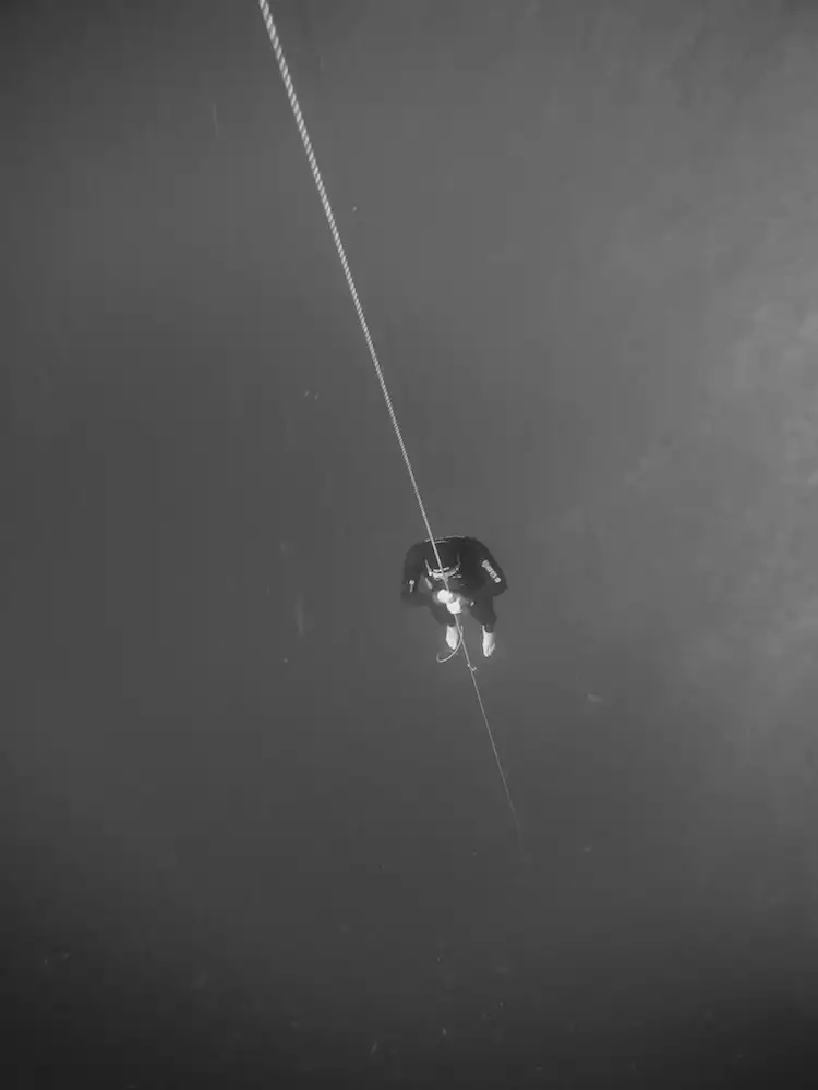 I did. But unfortunately it turned out to be a very human mermaid, a Russian freediver who had dived away from her rope. I ran into her at a depth of 40 meters. She was wearing a monofin, and from a certain distance a human with a monofin looks very similar to a mermaid. For a moment I thought, okay, it’s finally happening (laughs). But I was wrong, sadly.