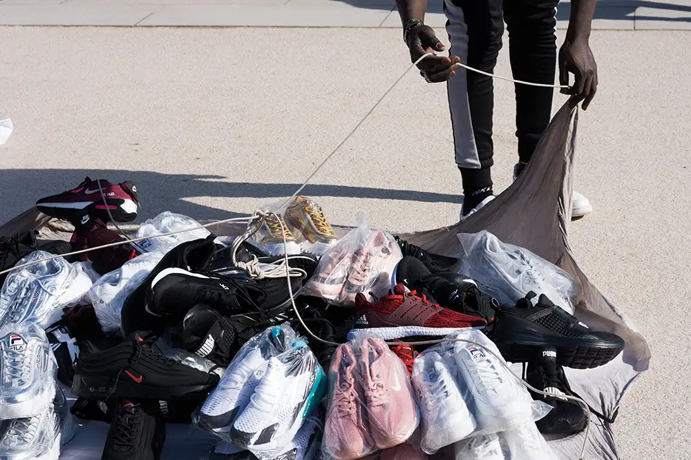 The illegal street vendors in Spain are called Manteros. A personal name derived from their constant companion, a manta ray, the white blanket on which they spread their goods and which can be transformed into a portable bag in a matter of seconds. Known as Top Manta, the informal sale of fake luxury goods takes place in public places in many parts of Spain. In contrast to Barcelona, where the Manteros even founded a trade union and their own fashion label, the high police presence in the centre of Madrid makes it difficult to earn a living. Who are the "black" men with the white bags? The Manteros told us about their everyday life.