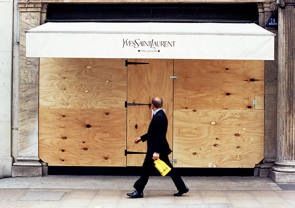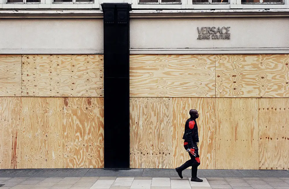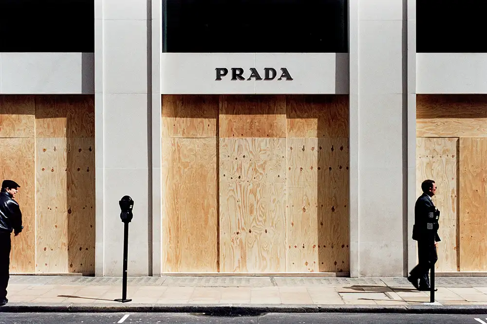 Fashion meets activism! The London photographer Immo Klink combines fashion photography with a critique of capitalism and masters this balancing act with authentic photographs that play with commercial imagery. In the past, Klink has photographed for Levi's, Benetton and The New Yorker, among others. In our Beauty Issue we show his photo series Mayday at Mayfair, which documents how on May 1, 2019, London's luxury boutiques barricaded their shop windows because of announced riots by opponents of capitalism. A conversation about consumerism, fashion, and beauty.