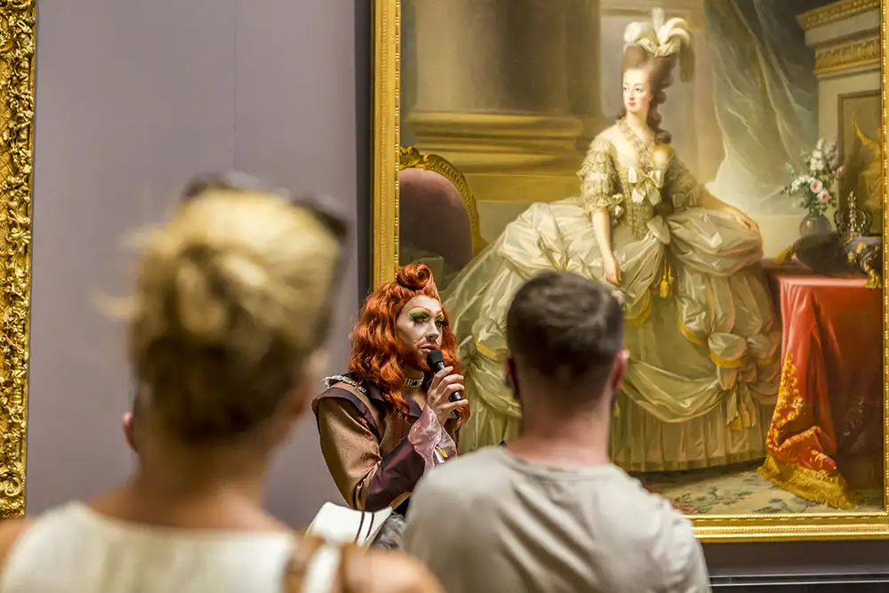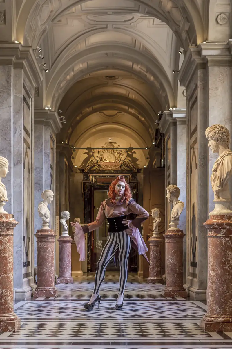 The museum is palatial and pompous but kind of lacks self-irony and has long missed out on questioning itself. That’s the case with most museums. On the occasion of the 125th anniversary there was the special exhibition “Celebration!”, which was about escaping the everyday, costumes and role play, among other things. I took the chance and proposed doing a tour in drag. We tried it out and it worked so well that it got continued.