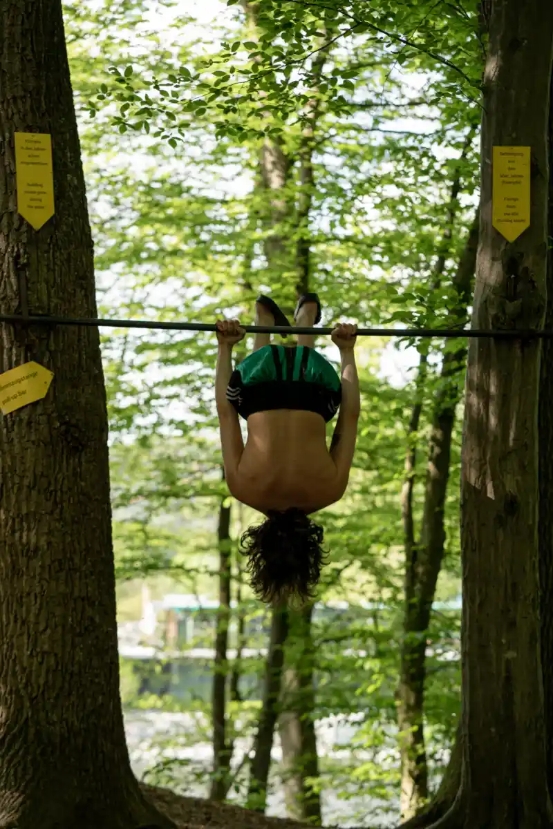 In the 1960s, Styrian weightlifters and triathletes trained at Lake Thal using homemade equipment, including a pull-up bar suspended between two trees.