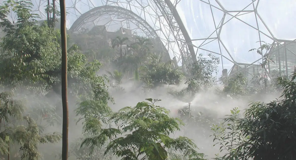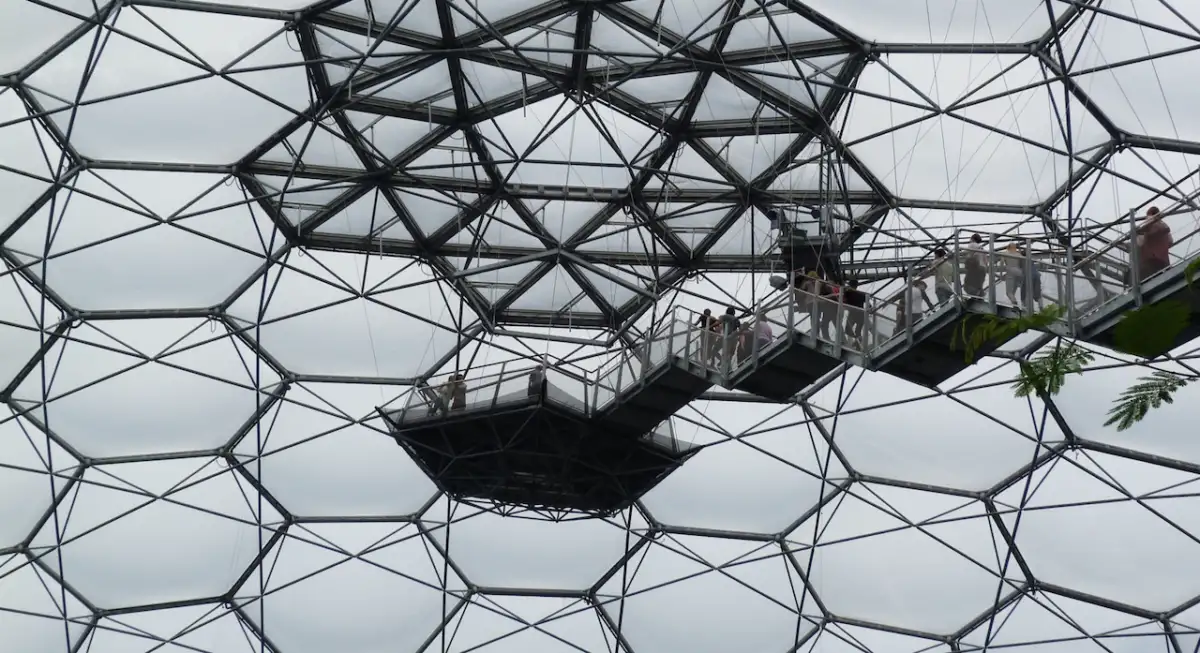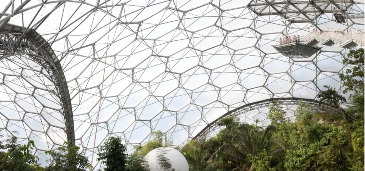 Das Project Eden im englischen Cornwall ist ein botanischer Garten. Zwei riesige Gewächshäuser dominieren das Gelände, die aus jeweils vier miteinander verschnittenen geodätischen Kuppeln in der Bauweise des US-amerikanischen Architekten, Designers und Visionärs Richard Buckminster Fuller bestehen. Verschiedene Vegetationszonen sind darin simuliert.