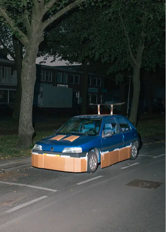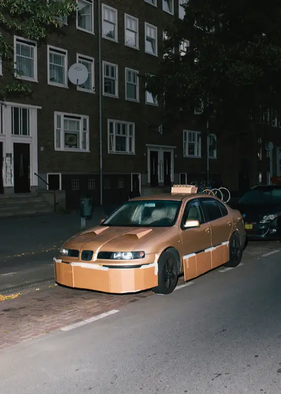 Ja, zwei Wochen lang habe ich abends die Kartonteile vorbereitet und zwischen vier und fünf Uhr Früh in den Straßen von Amsterdam nach den perfekten Autos gesucht. Auf die habe ich dann die Kartons geklebt, ein Foto gemacht und bin danach so schnell wie möglich wieder weggerannt. Ich bin mir sicher, die meisten Autobesitzerinnen haben sich eher nicht darüber gefreut, aber zum Glück wurde ich nie erwischt.