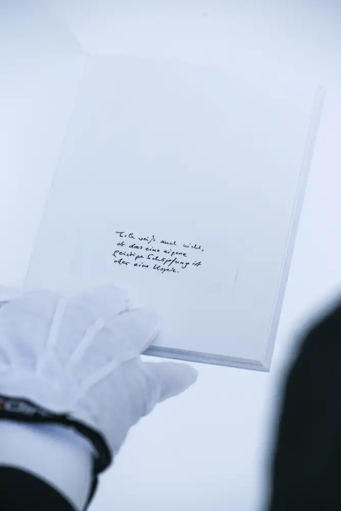 Kunst oder Plagiat? „Ich weiß auch nicht, ob das eine eigene geistige Schöpfung ist oder eine Kopie“, steht im Buch, das Kucsko mit vermeintlich leeren Seiten gestaltet hat.