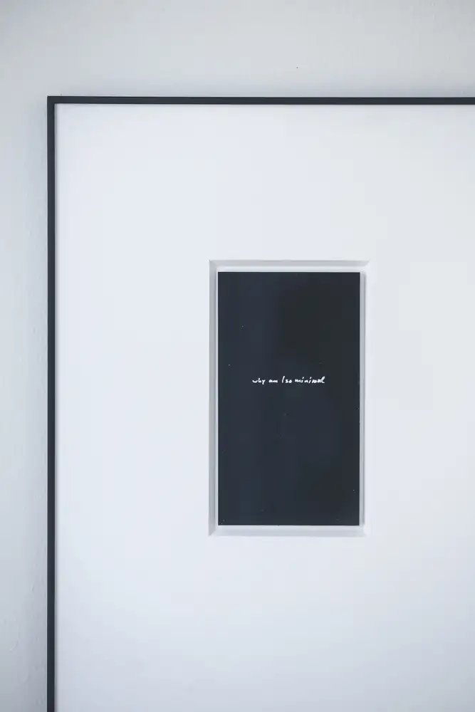„Why am I so minimal?“ steht auf dem gerahmten Bild. Die Lust an der Reduktion, Konzeption, Klarheit und Struktur atmen Kucskos Arbeiten, sein Denken und das Atelier.