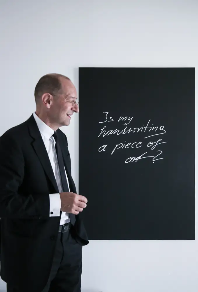 „Is my handwriting a piece of art?“ Juristisch gesehen nicht, aber was, wenn ich diesen Satz auf ein Bild im Kontext einer musealen Präsentation schreibe?
