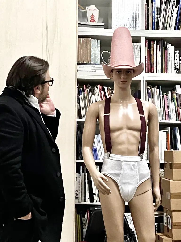 Danke Dir! Dazu inspiriert hat mich ein medizinischer Text, in dem stand, dass manche Männer keinen Sex haben, weil sie es nicht aushalten, wenn nach dem Orgasmus ihr Penis schrumpft. Sie fühlen sich dann nicht mehr männlich. Mit meiner Window Shopping-Arbeit „Hard Hat“, eine Schaufensterpuppe in Unterhose, Hosenträger und mit „schlaffem“ und „steifem“ Hut auf dem Kopf, habe ich das auf die Schippe genommen. Die Arbeit konnte man während des zweiten Lockdowns in der Auslage der Wiener Gabriele Senn Galerie in der Schleifmühgasse sehen. „Hard Hat“ heißt im Slang übrigens „steifer Penis“.