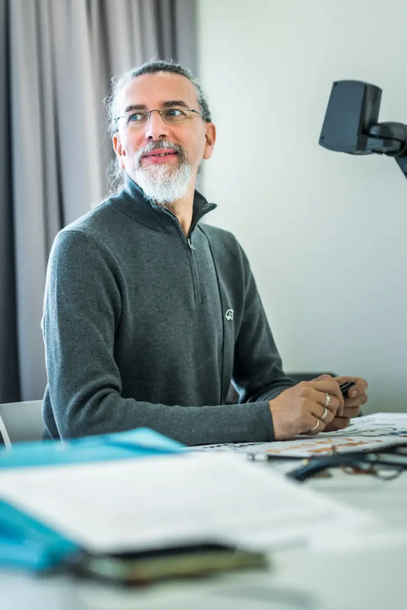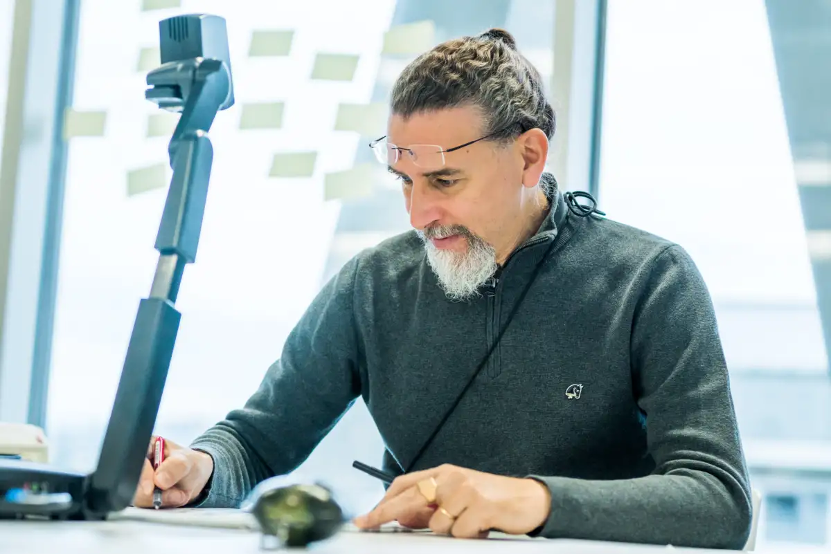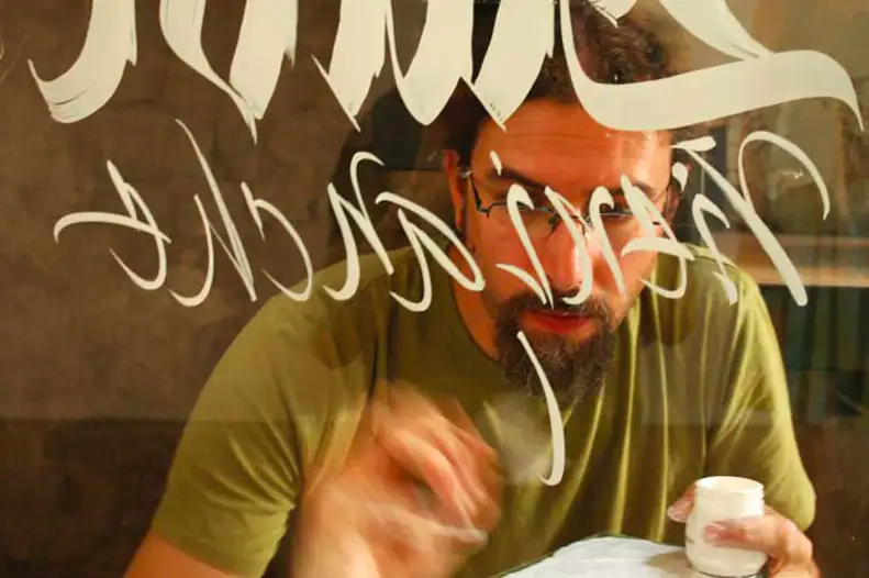 Eigentlich bin ich gelernter Elektrotechniker. Das mit der Kalligrafie war wie mit der ersten Liebe, man weiß nie, wann es genau so weit sein wird. Es passiert einfach. Das erste Mal war in Venedig. Ich nahm in einem Kurs für Kalligrafie eine Feder in die Hand. Das klingt vielleicht kitschig, aber es war Leidenschaft auf den ersten Blick. Als ich diese Feder in der Hand hatte und anfing Buchstaben zu gestalten, vergaß ich die Zeit. Das ist zum Glück immer noch so: Wenn ich schreibe, bin ich nur scheinbar anwesend, in Wirklichkeit bin ich immer zwei Zentimeter neben mir.
