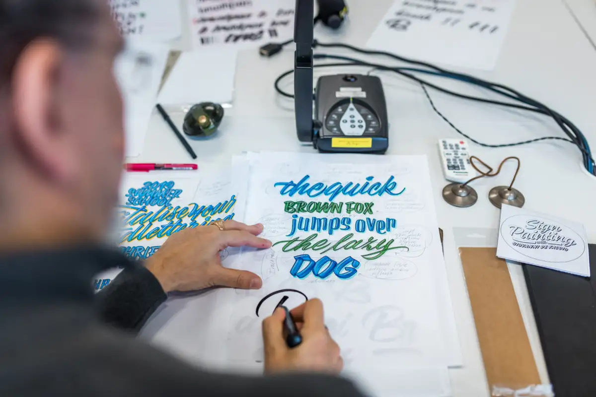 Ja, ich habe in den Gelben Seiten die Adressen von Grafikschulen in Österreich rausgesucht und ihnen kalligrafisch gestaltete Briefe geschrieben, mit der Frage, ob Sie Interesse hätten, mehr von meinen Arbeiten zu sehen. Innerhalb von drei Tagen hat mit der Direktor einer privaten Grafikschule im niederösterreichischen Pöchlarn geantwortet und geschrieben „Giovanni, komm zu uns, zeig uns, was du machst!“ Das war mein erstes und bisher einziges Bewerbungsgespräch – der Start meiner Karriere als Kalligraf in Österreich.