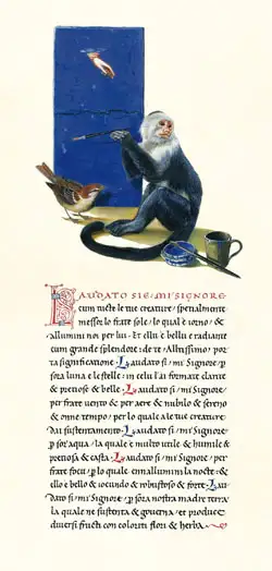 Das linke Bild zeigt eine Seite des Manuskripts „Litterae“, das de Faccio auf Pergament mit einem Federkiel und selbst hergestellten Pigmenten verfasst hat. Das rechte Bild zeigt eine Seite des Buches „La Operina“, dessen Inhalte vielen zeitgenössischen Schriftdesignerinnen als Inspiration gedient haben.