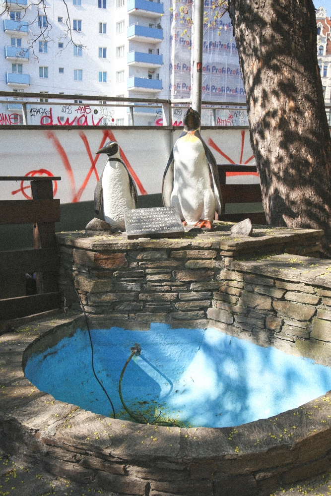 Mein Großvater hat 1958 im Garten zwei Steinpinguine „eingepflanzt“. Fast sechzig Jahre sind sie dort friedlich gestanden, bis irgendein Idiot den Babypinguin, Pingi, ausgerissen und mitgenommen hat. Das war sicher eine b’soffene G’schicht. Meine Mama war todtraurig. Er kam aber zwei Jahre später wieder zurück.