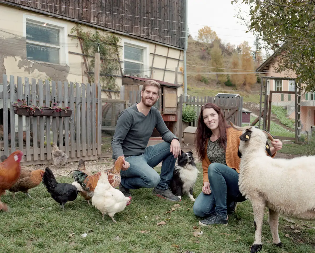 Andreas Koitz (auf dem obigen Foto mit seiner ehemaligen Partnerin und Mitbegründerin der Wurmfarm Lisa Marie Schaden)ist in Kärnten geboren und auf dem Landwirtschaftsbetrieb der Familie groß geworden, den er übernommen hat.