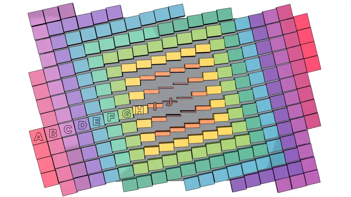 die Anordnung, die Tiefe und Höhe der Kuben festgelegt. Für dieses