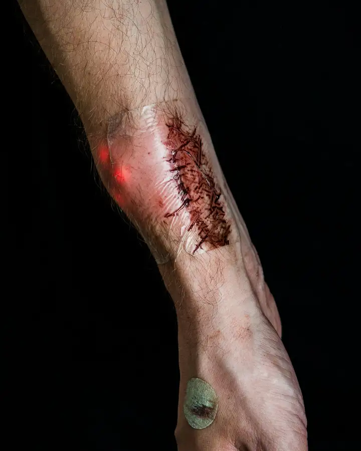 Der Arm eines Mannes nach der Implantation des Geräts North Star 1.0