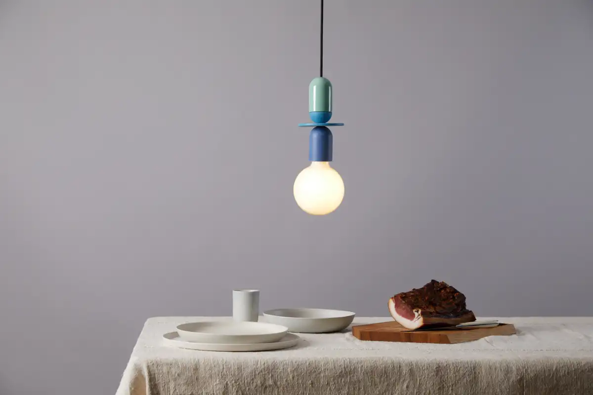 Beim Design ihrer Lampenkollektion „Pearls“ haben sich Santorso und Ambrosz vom sogenannten „Russenleuchter“ inspirieren lassen. So bezeichnet man Glühbirnen, die ohne Lampenschirm von der Decke hängen.