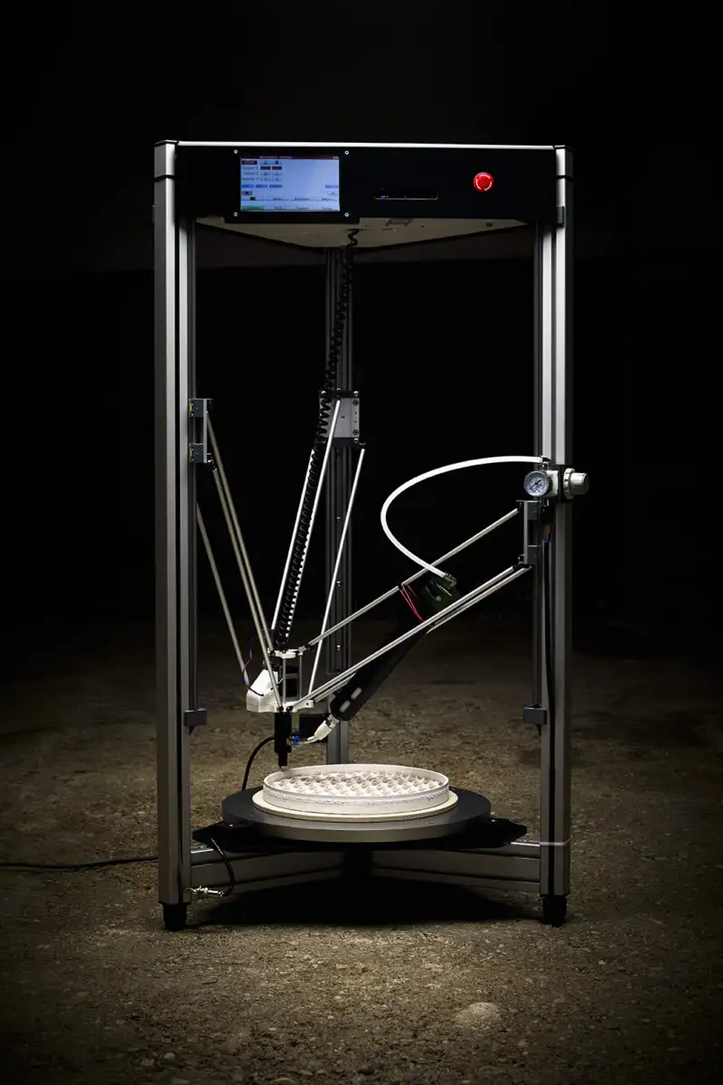 K.S.: Die gedruckten Lampen verfügen über Strukturen, die im klassischen Porzellanguss nicht hergestellt werden können. Das sind sogenannte „Stützstrukturen“, die vom Drucker mit einer Düse schichtweise aufgetragen werden. Unser Kooperationspartner Ernst Forster hat eigens für die Herstellung dieser Lampen einen 3-D-Drucker gebaut, konfiguriert und adaptiert. Bis das Verfahren fertig entwickelt war, hat es etwa ein Jahr gedauert.
