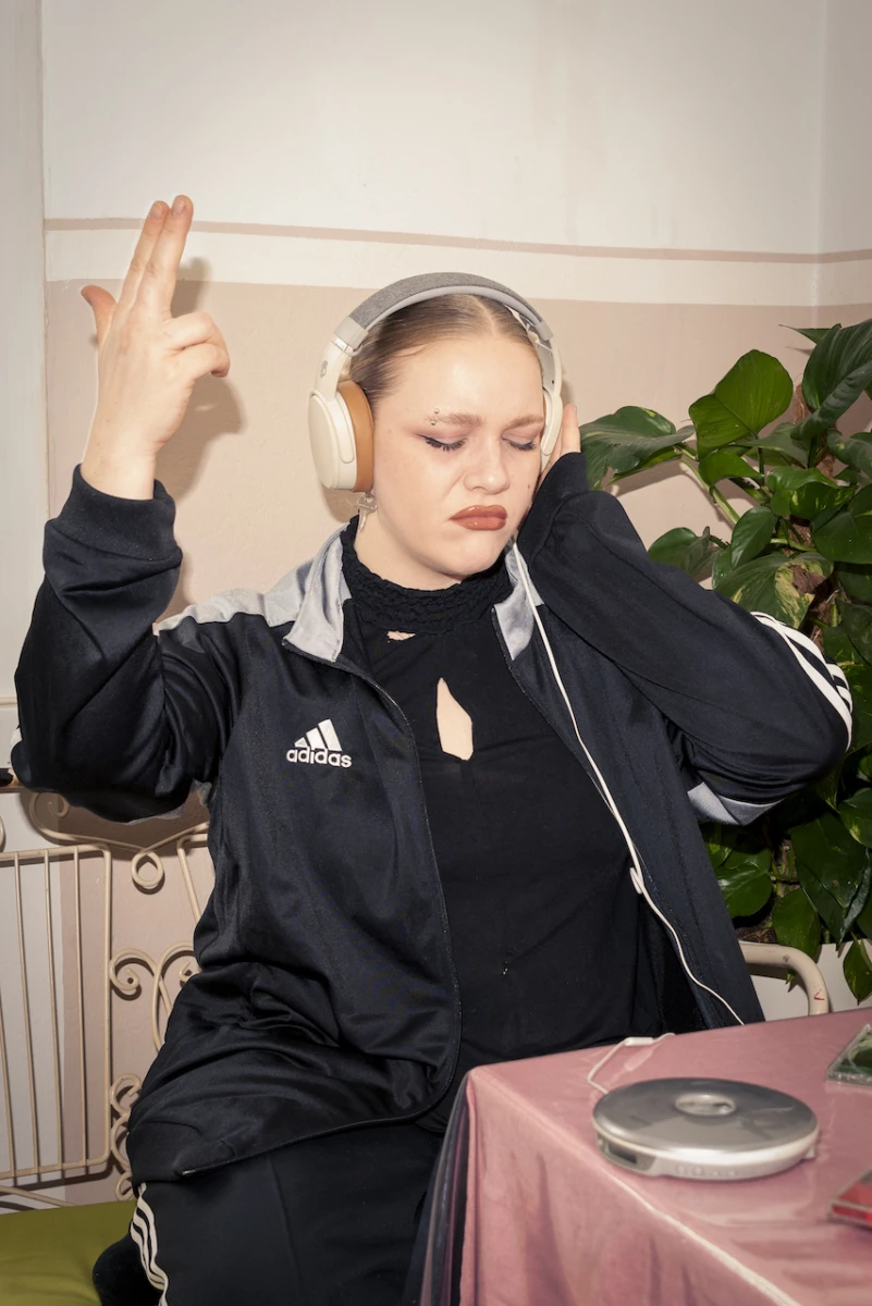 Ich finde vor allem Songs von Flinta*-Artists sehr bewundernswert, ich dachte: „Wow, die haben Feuer unterm Arsch.“ Lady Sovereign war sehr prägend für mich. Sie war eine der ersten britischen Female MCs, die im Grime-Stil (eine Musikrichtung aus Großbritannien, geprägt durch einen aggressiven und düsteren Sound, Anm. d. Red.) gerappt hat und damals erst 15 Jahre alt war. Sie ist der Grund, weshalb ich noch heute einen Schlüssel als Ohrring trage. Sie hatte auch immer einen um den Hals. Außerdem habe ich viel Eminem gehört, und ich liebe die Gorillaz. Mein erster Tonträger war von ihnen – „Demon Days“.