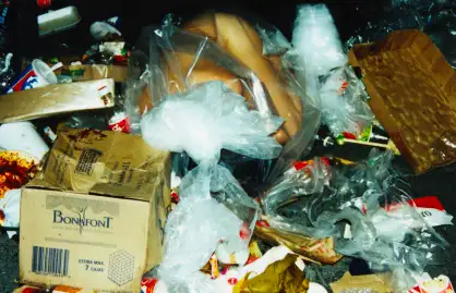 „No perdemos nada con nacer“, übersetzt: „Wir verlieren nichts, wenn wir geboren werden“, heißt die Performance, bei der die Künstlerin in einem Plastiksack auf einer mexikanischen Müllhalde lag. Eine Erklärung zu dieser Performance gab sie nicht ab, sondern räumte den Zuschauerinnen ein, dieser eine eigene Bedeutung zuzumessen.
