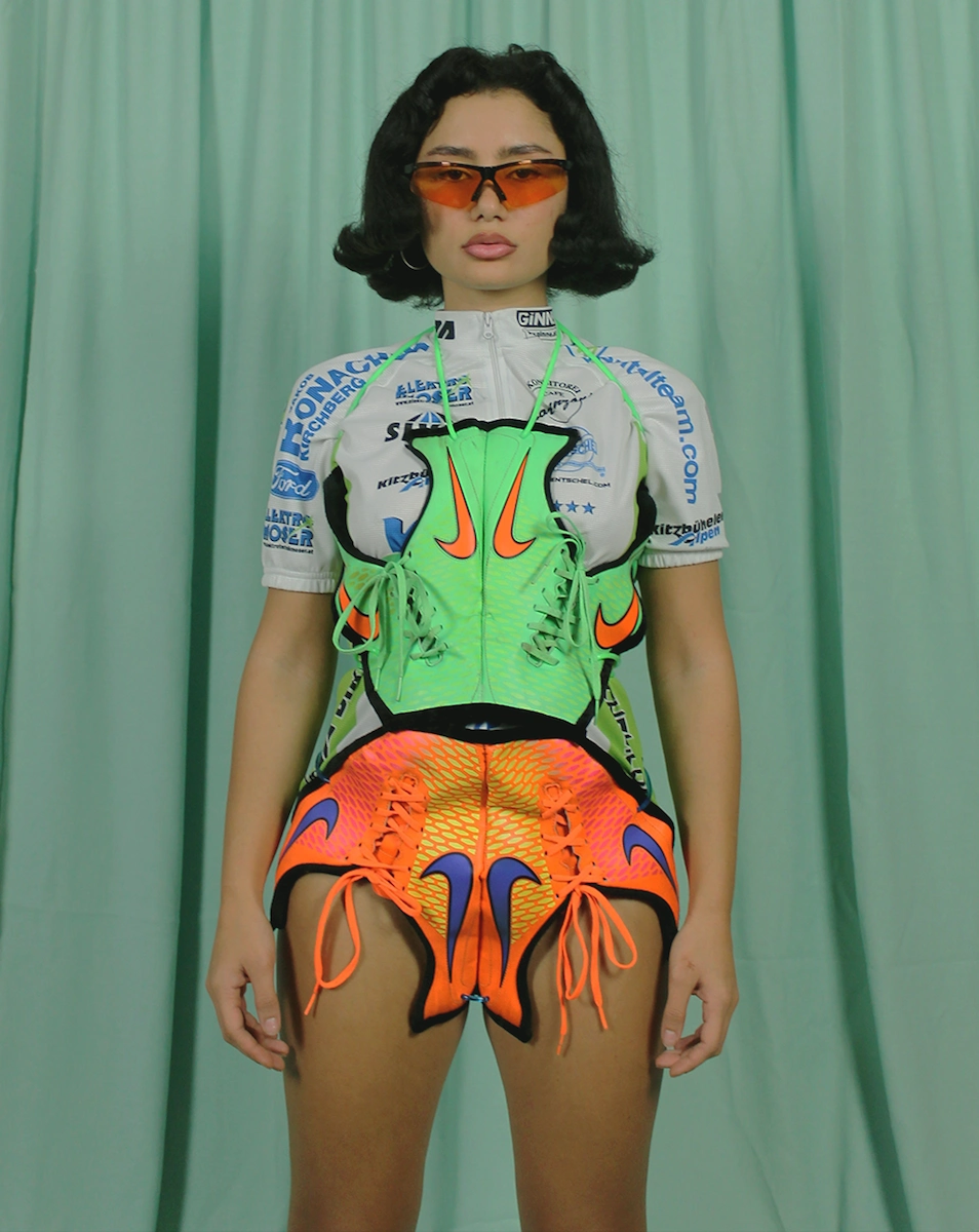Ich bezeichne mich nicht als Fashion-Designerin, weil mir das technische Wissen fehlt, wenn es um Schnittkonstruktion geht. Wenn etwas perfekt ausgearbeitet sein soll, mit einer guten Fertigung, dann würde ich das nicht hinkriegen. Ich könnte zum Beispiel keinen Mantel mit Kragen nähen. Ich bin viel mehr aufs visuelle Arbeiten aus und möchte auch mehr in Richtung Creative Direction gehen. Ich arbeite gerade an Filmen, mag das Cutten und würde mich auch gerne wieder mehr in Richtung Musik bewegen. Mode ist das, worin ich mich am besten ausdrücken kann.