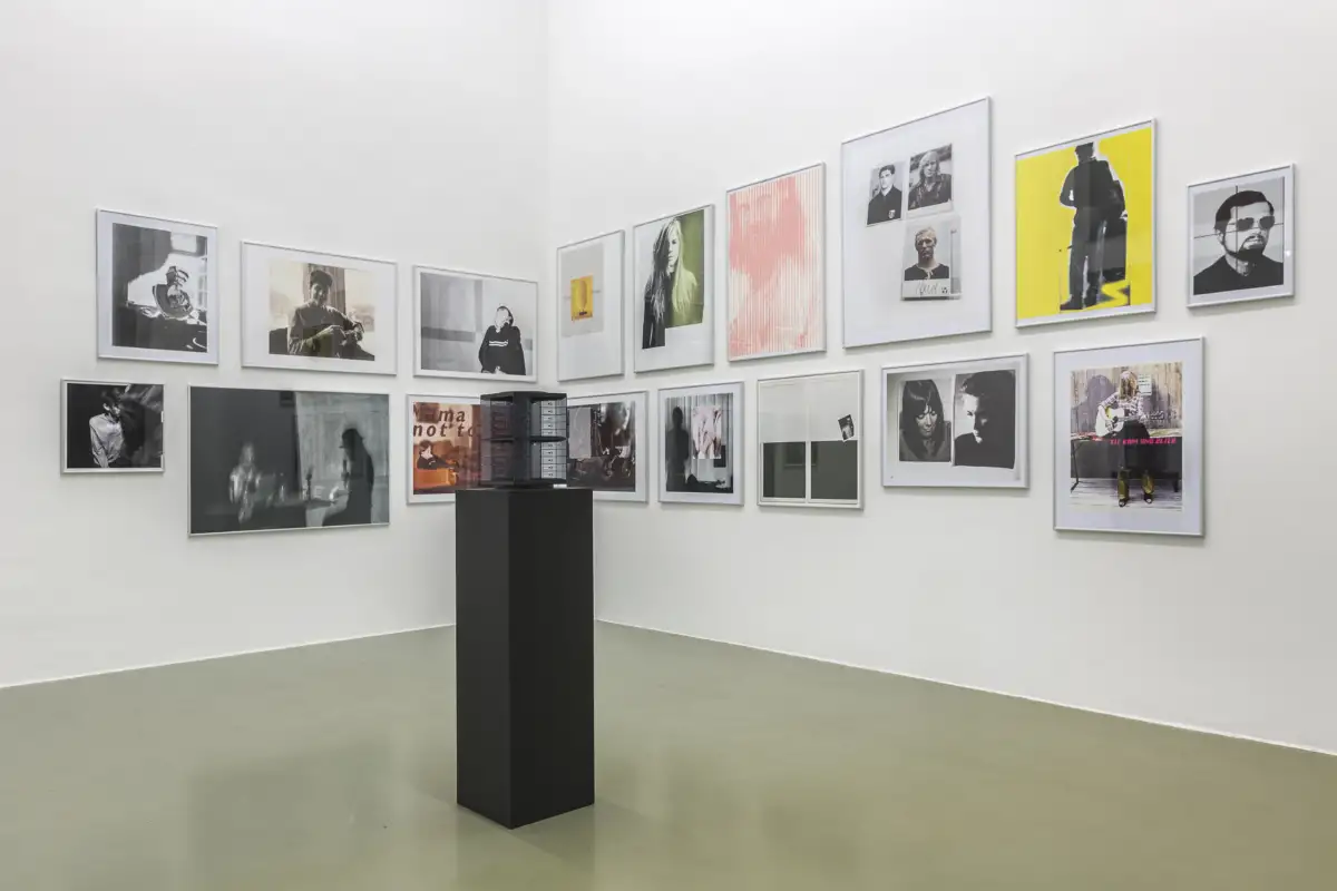 Galerie Crone Wien mit Rosemarie Trockel „Ohne Titel“, 2016 und Gregor Hildebrandt „Fundstück für Dan Graham“, 2009