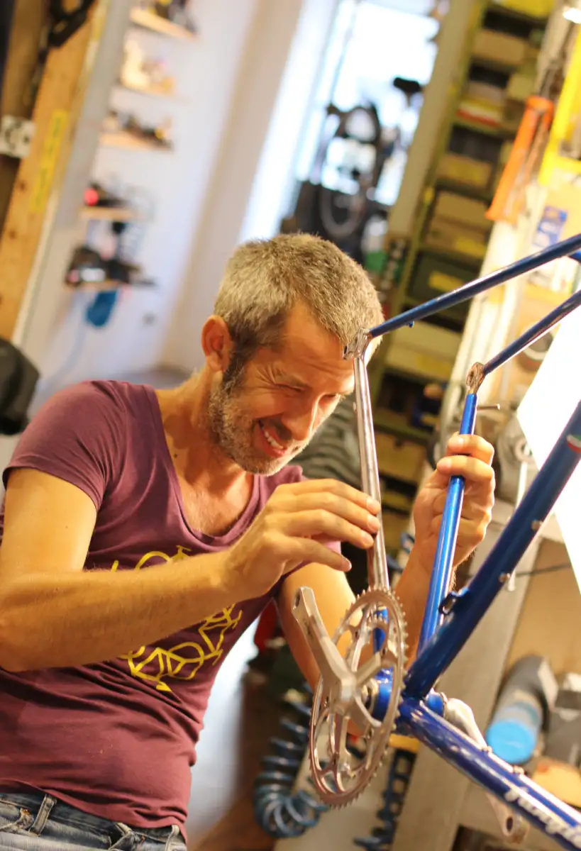 Wir sind ein ziemlich durchmischter Haufen mit den verschiedensten Qualifikationen. Ich bin fürs Marketing zuständig, ausgebildeter Mobilitätsberater, war Creative Director, Tauchlehrer, sogar mal Hotelier. Richard Zirkl, unser „Chef de Bike“ und Co-Gründer ist gelernter Feinmechaniker, Veranstaltungs- und Fahrradtechniker, der zweite „Chef de Bike“ und Co-Gründer Peter Pluhar, hat eine Ausbildung als KFZ-Mechaniker und Sonderschullehrer. Unsere Shop-Managerin ist Barbara Hohlbrugger, Ergotherapeutin und Mechanikerin.