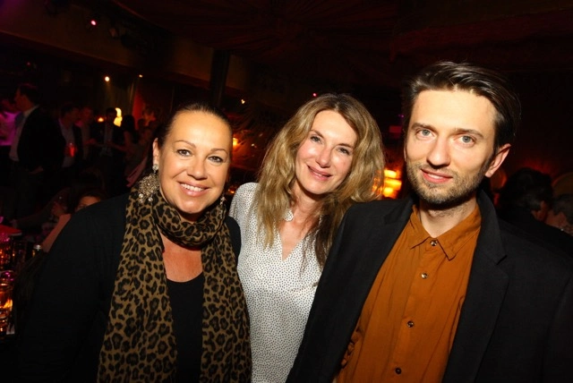 Eine Foto aus dem Privatarchiv: Nicole Adler mit Monika Szilagy und Modedesigner Petar Petrov.