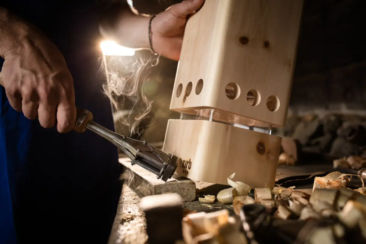 Bild links: Die Werkstätte "Zirb" in Innsbruck stellt Raumlüfter aus Zirbenholz her, www.zirb.at. Bild rechts: Karak, die Fliesenmanufaktur aus Vorarlberg, www.karak.at