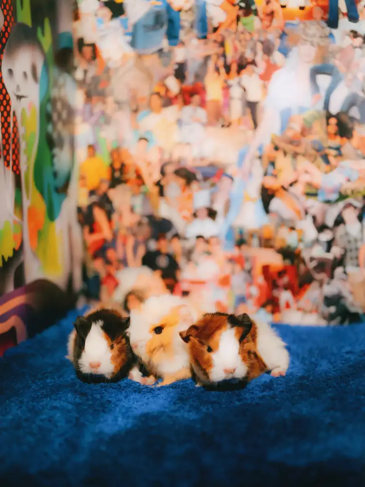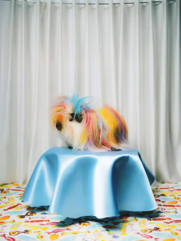 Zunächst überhäuften wir sie mit Komplimenten, dann kamen sie zur Hairstylistin, die ihnen schöne Frisuren machte, anschließend wurden sie von der Züchterin massiert, damit sie sich entspannen. Dadurch waren die meisten sehr selbstbewusst und genossen es, sich beim Shooting in Szene zu setzen. Nach getaner Arbeit spazierten sie dann mit ihren neuen Frisuren ganz stolz zu den anderen Meerschweinchen.