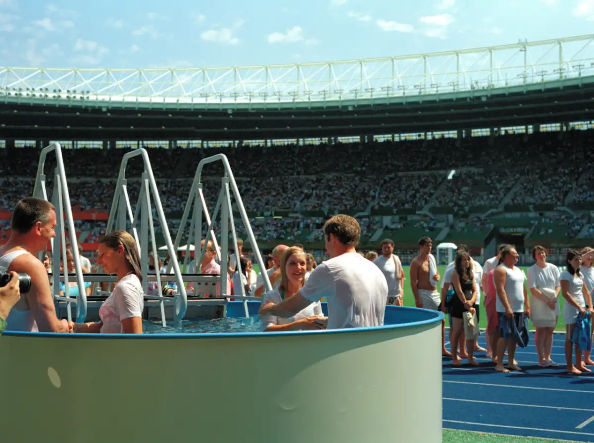 Die Taufbecken der Zeugen Jehovas sind ein bisschen größer als die der katholischen Kirche.