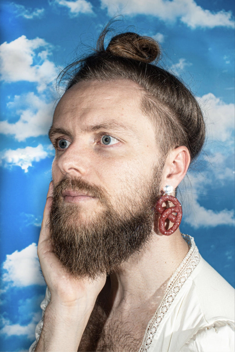 Exklusiv für uns hast Du auch die Fotoreihe „Vienna Schnitzel Lover“ fotografiert, in der Du Deinen Freund mit Schnitzelkette in einer Dirndlbluse zeigst. Wie kam's zu der Idee für diese Serie?