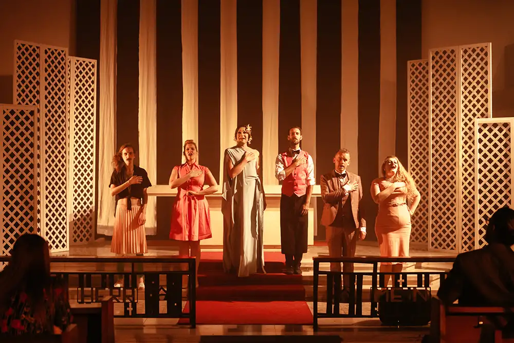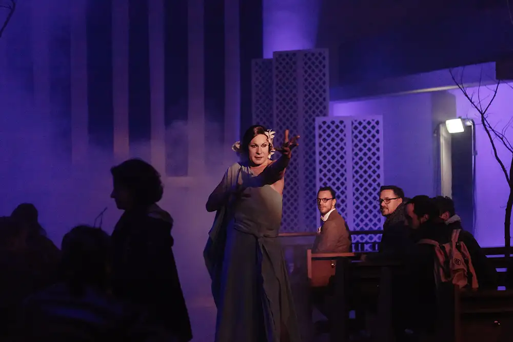 Nesterval besteht aus Performerinnen, Drag Artists und Laienschauspielerinnen, die in unterschiedlichen Formationen die Geschichte der Familie Nesterval charakterisieren.