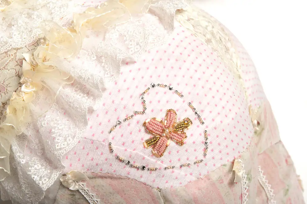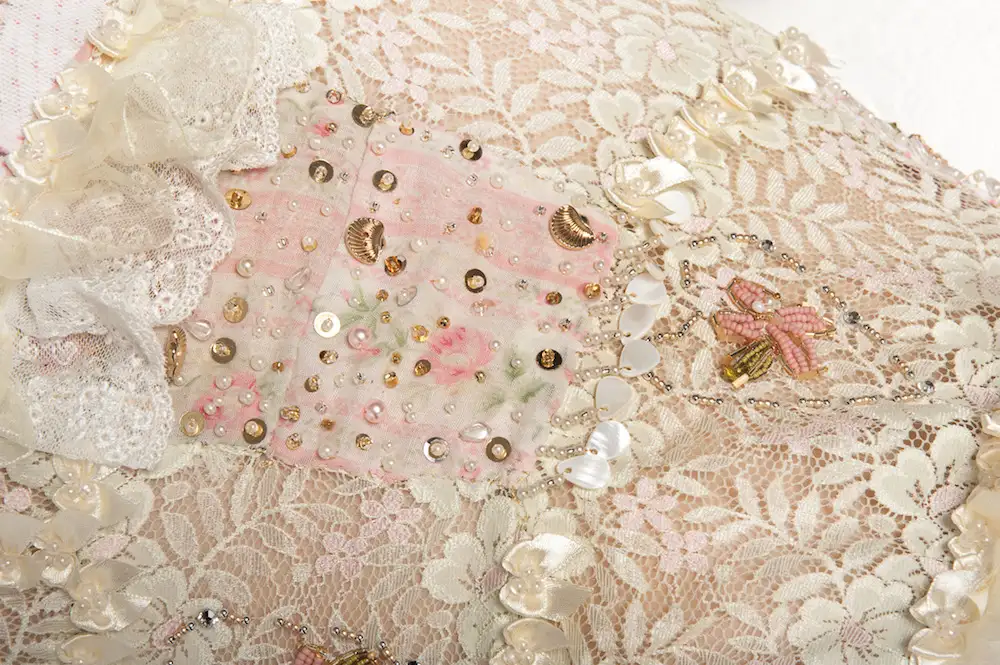 Im liebevoll bestickten Textil gibt sich die Künstlerin einen neuen Körper. Die Arbeit „Pink Dress“ stammt aus dem Jahr 2009.