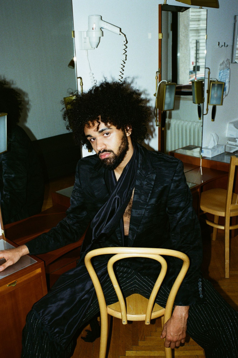 Cover: Pants: Niko Markovic, Blazer: Vintage/Stylist’s own, Shirt: Vintage/Stylist’s own, Brooch: Niko Markovic, Shoes: Puma (Langston's own)