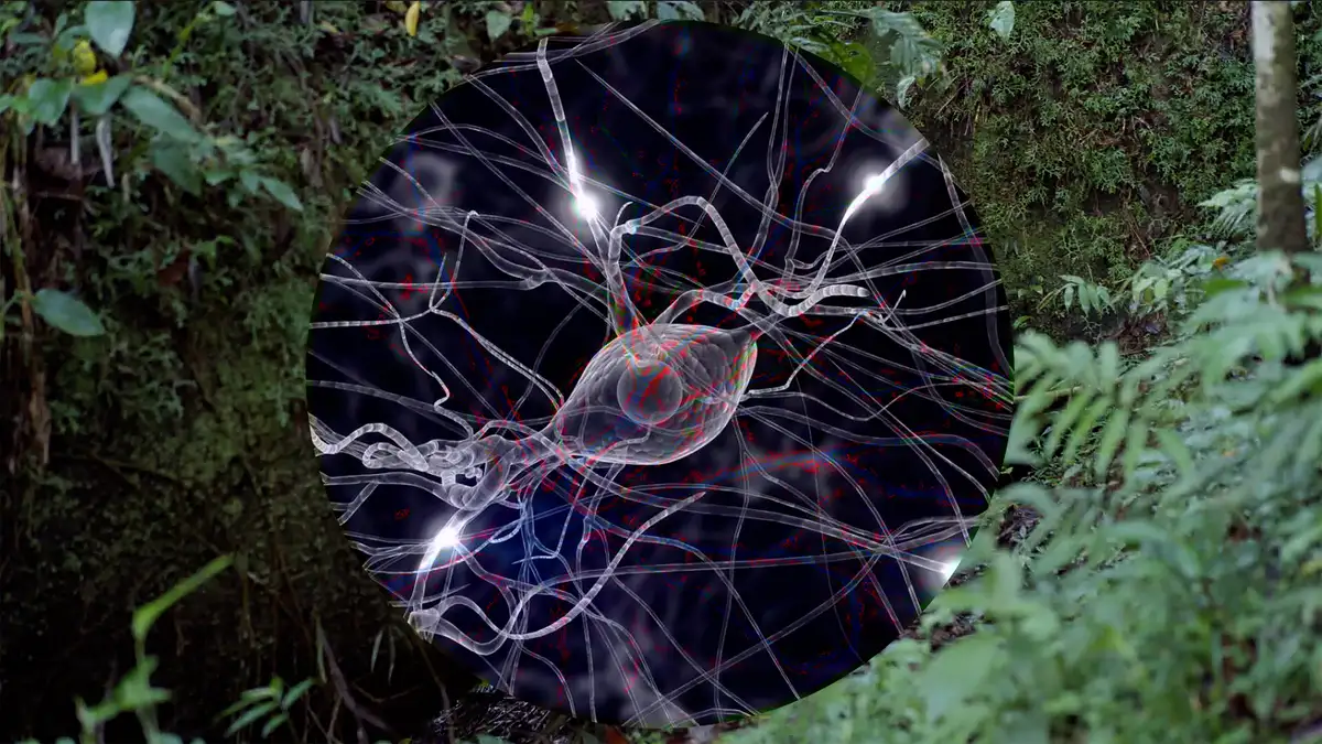 „Forest Mind“ handelt von der Beziehung zwischen Mensch und Natur und der Codierung des Lebens mit seiner Form der Informationsspeicherung.